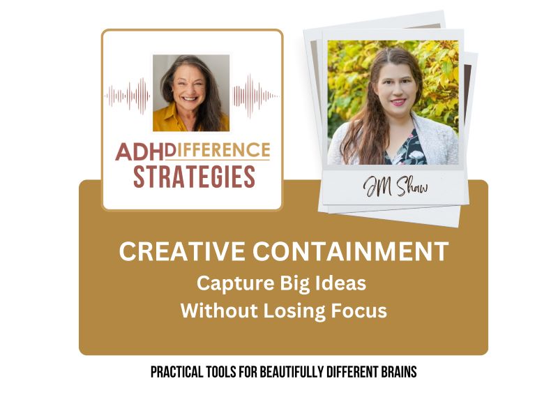 How ADHD Brains Can Capture Big Ideas Without Losing Focus | with guest JM (Jennifer) Shaw | Jennifer’s standout strategy for navigating her creative ADHD brain when writing her novels...